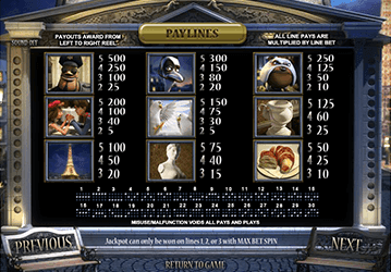 Slot симулятор A Night in Paris оставит неизгладимый след в душах игроков. Традиционно для Парижа, сердце игроков наполнится привязанностью к слоту. Помогут в этом особые символы – Скттер и Бонус. Скаттером стал полицейский значок с флагом Франции, который активирует раунд фриспинов. Бонусом стала картина, которыми славится Лувр, он откроет для геймеров бонусный раунд. Романтичным гэмблерам предстоит спасти из рук грабителей предметы искусства. За спасение положено впечатляющее вознаграждение. Слот-машина A Night in Paris от официального казино также порадует двумя режимами.