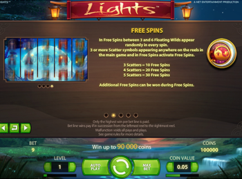 Благодаря специальному Дикому символу в симуляторе Lights образуется множество оплачиваемых комбинаций, а значит, вы можете озолотиться за считанные минуты. К другим достоинствам азартной игры относятся прекрасная графика и удобный интерфейс.