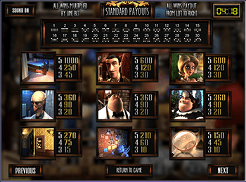 Демо эмулятор WhoSpunIt – игровой аппарат, который завоюет внимание игроков с первых спинов. Слот-машина перенесет геймера в особняк, где произошло загадочное убийство. Его задача – распутать преступление и понять, кто является настоящим виновником трагедии. Результатом станут заслуженные желанные выплаты. Символикой игры стали муж и жена – владельцы особняка, дворецкий, горничная, доктор, труп, скрытый сейф и лупа.